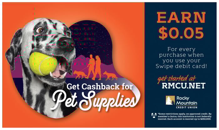 Typically, you think of credit cards when you think of rewards. But with an RMCU Swipe account, you can earn rewards just on your checking account. You get 5¢ cents back every time you swipe after ten swipes in a month. Your morning coffee, lunch, after-work beer at the brewery, and the milk you pick up on your way home, all of them are earning you money. You get cashback with groceries, cashback with bills, cashback with pets, cashback with gas, cashback with ski passes, cashback with coffee: Swiper, keep swiping, and keep getting cashback with every purchase you make. With so many ways to build your cashback rewards, it has never been easier to swipe even with contactless payment methods.